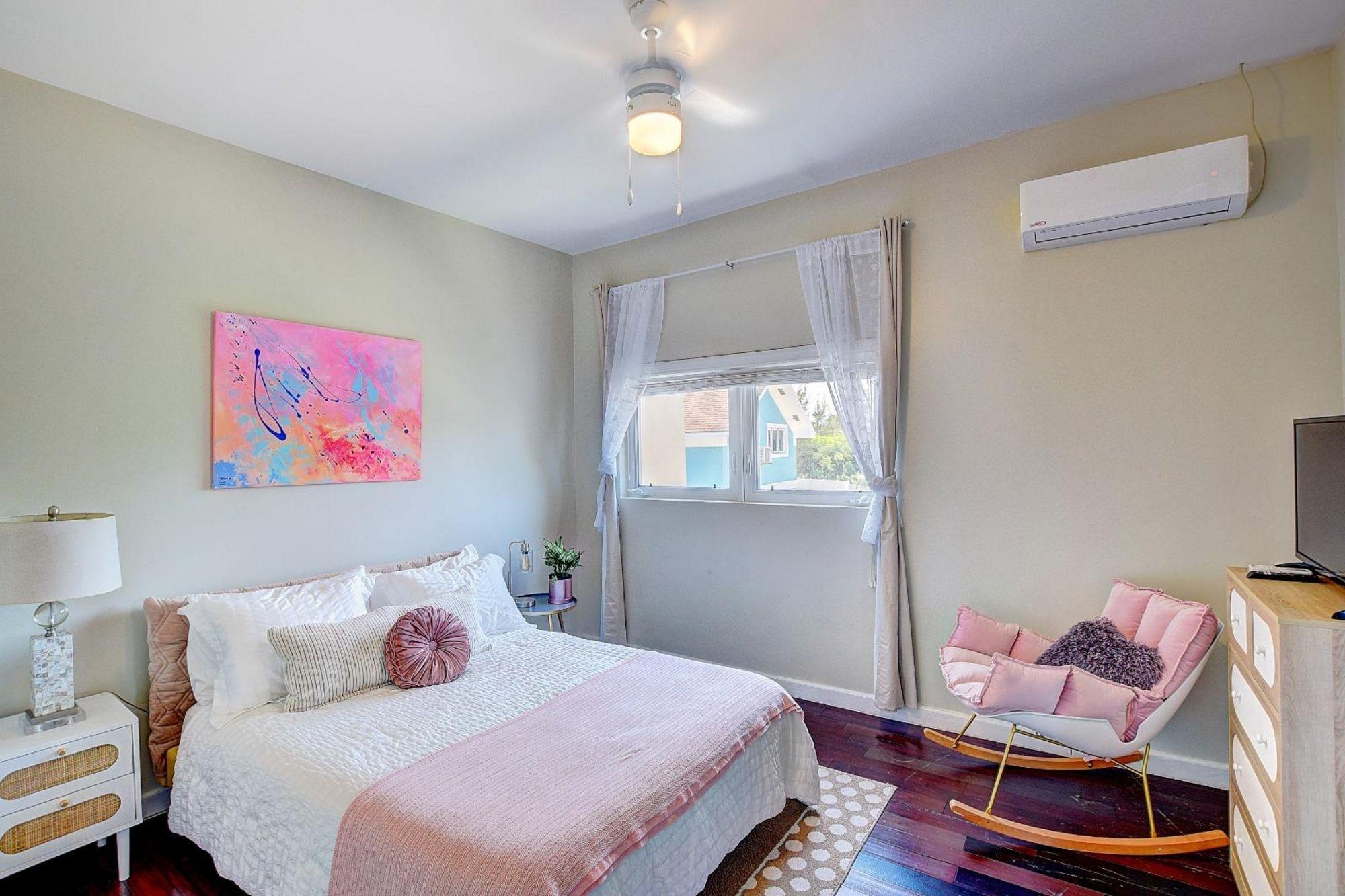 This beautifully furnished two-bedroom, two-and-a-half-bath townhouse is located in the quiet, secure neighborhood of Love Estates in Nassau, Bahamas. Offering approximately 1,200 square feet of comfortable living space, it’s ideal for professionals or small families seeking style and convenience. The home features an open-concept living and dining area filled with natural light, a modern kitchen with stainless steel appliances, and two spacious ensuite bedrooms. A washer and dryer are also included. All utilities—electricity, water, gas, and cable—are included in the rent, and there is a pool on the property. Conveniently situated near the airport and the upscale Old Fort Bay area, Love Estates offers a perfect blend of privacy, security, and accessibility.