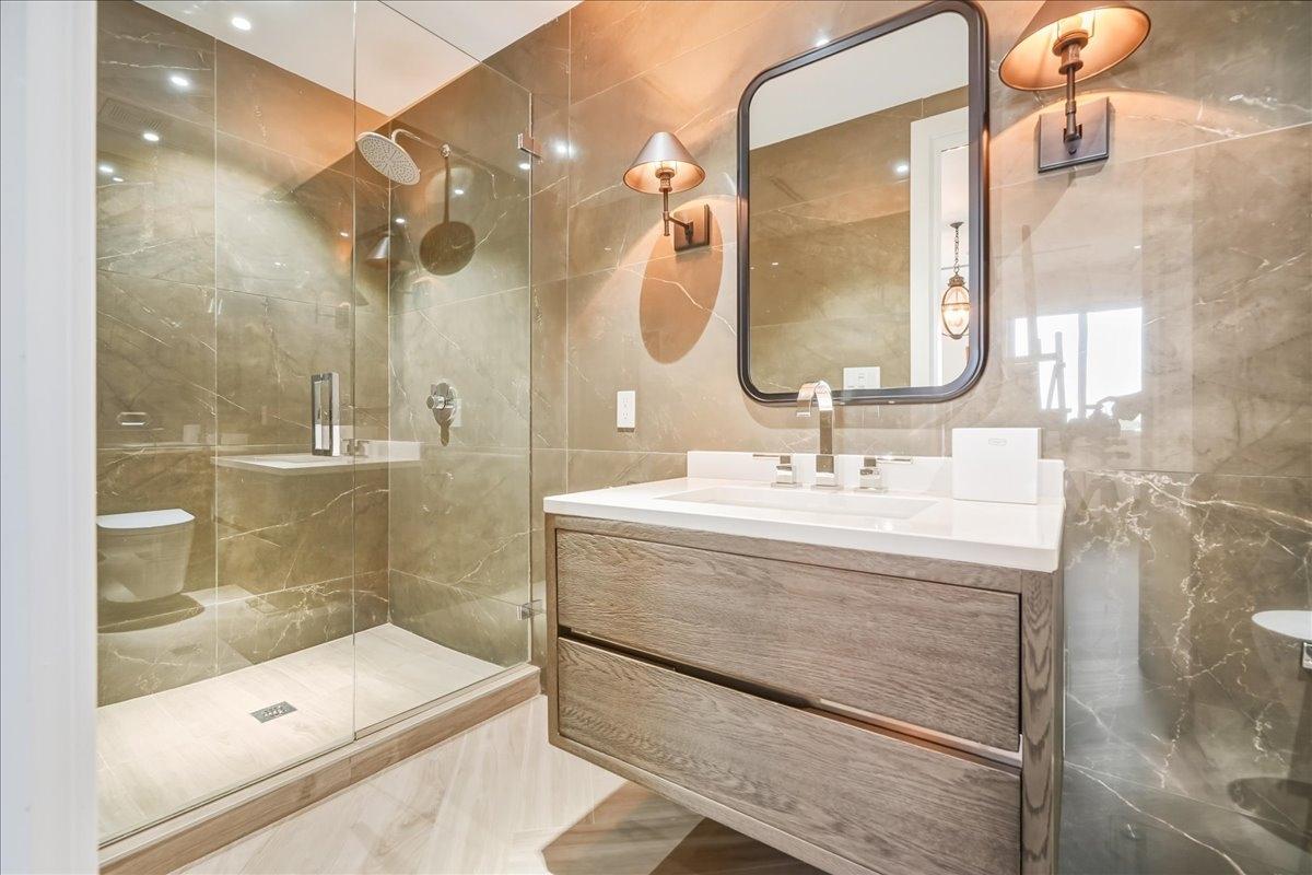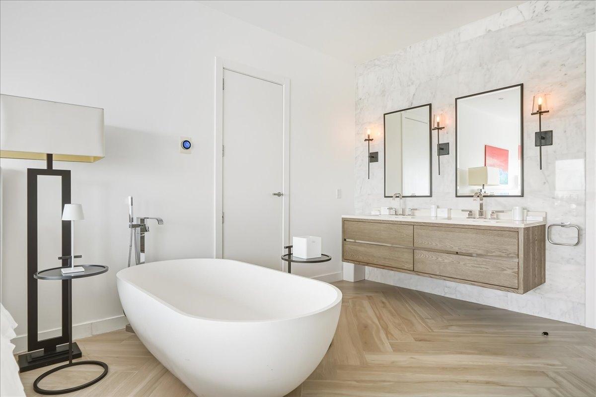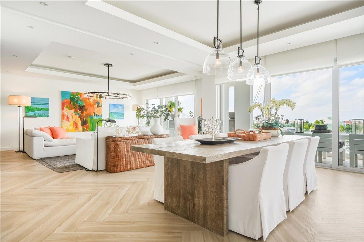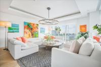 Introducing an exceptional double penthouse in the gated, beachfront community of Palm Cay. The largest residence in One Marina, Unit 109 is a spacious and luxurious 5 bed, 5.5 bath condo, that seamlessly blends expansive interior living with generous outdoor spaces. A well-designed kitchen is equipped with high-end appliances, making it ideal for everyday living and entertaining. The open-plan living area spans the full width of the unit and enjoys natural light from sliding glass doors that open onto the large balcony, perfect for outdoor dining. Upstairs, the primary suite features its own balcony, ample closet space, and a luxurious ensuite bathroom. A separate guest wing includes 2 ensuite bedrooms, while 2 additional ensuite bedrooms are located on the 1st floor. The unit has a laundry room, powder room, rooftop pool access, plus a private rooftop pool and patio offering amazing ocean views. Residents enjoy Palm Cay’s world-class marina, abundant amenities, and a community with no rental restrictions, making 109 ideal for vacation rentals.