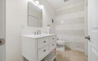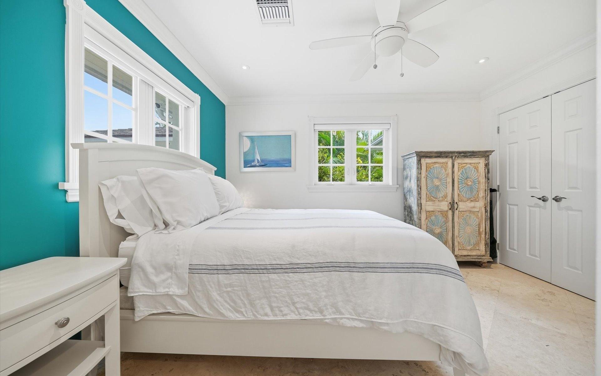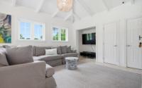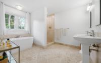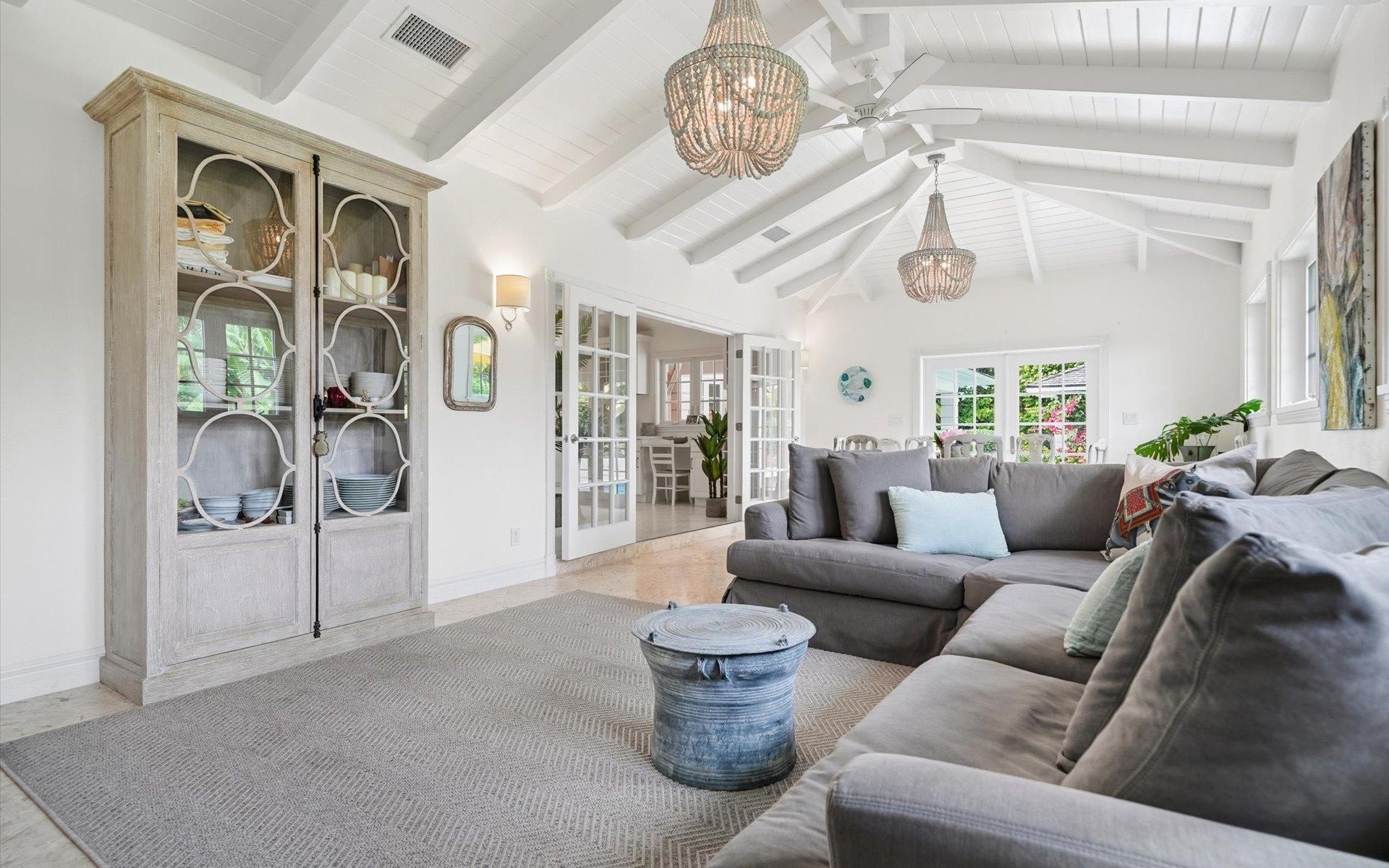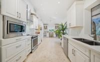 A recently rebuilt residence with a guest apartment offers five bedrooms and five and a half bathrooms across roughly 4,000 square feet and is set on a beautifully landscaped 0.48-acre lot. The open-plan living room flows seamlessly into the kitchen. Beyond is a combined dining and family area, ideal for both everyday living and entertaining. The kitchen is well-appointed with stainless-steel Maytag appliances, including a dishwasher, a KitchenAid microwave, and a six-burner stove. The kitchen also has a dedicated laundry room off it that leads through to the garage. All bedrooms are en-suite. The spacious primary suite offers his-and-hers walk-in closets, dual vanities, and a separate shower and soaking tub. The pool area and gardens have been enhanced with additional lush landscaping. This creates a private and serene outdoor setting. Adjacent to the pool is a separate structure housing the pool equipment, along with a convenient shower and toilet. The separate guest apartment could also work well for a live-in housekeeper. The apartment was recently added