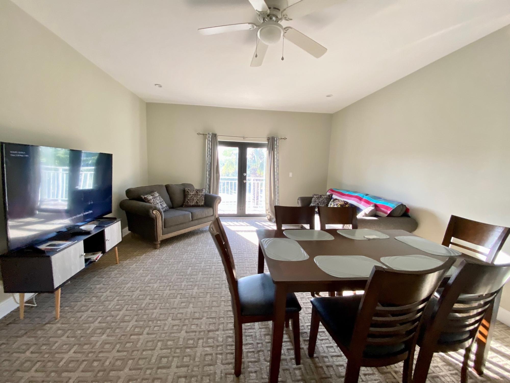 This gated complex is just a 5-minute drive from the beach and from the Nassau airport. It comes fully furnished with a king-size bed, en-suite bathroom, and walk-in closet in the master bedroom; a queen-size bed in the second room, which shares a bathroom with the third bedroom; and a 3-child bunk bed. The large, open-plan kitchen/living/dining room has a flat-screen TV and opens onto a balcony. There is a full-size washer and dryer, and the modern kitchen has a dishwasher, microwave, dishes, pots and pans, etc. The unit has central air-conditioning. Venetian West is next door to an upscale shopping centre with restaurants, shops, and a Fresh Market supermarket for all your grocery needs. This unit is like new and in excellent condition.