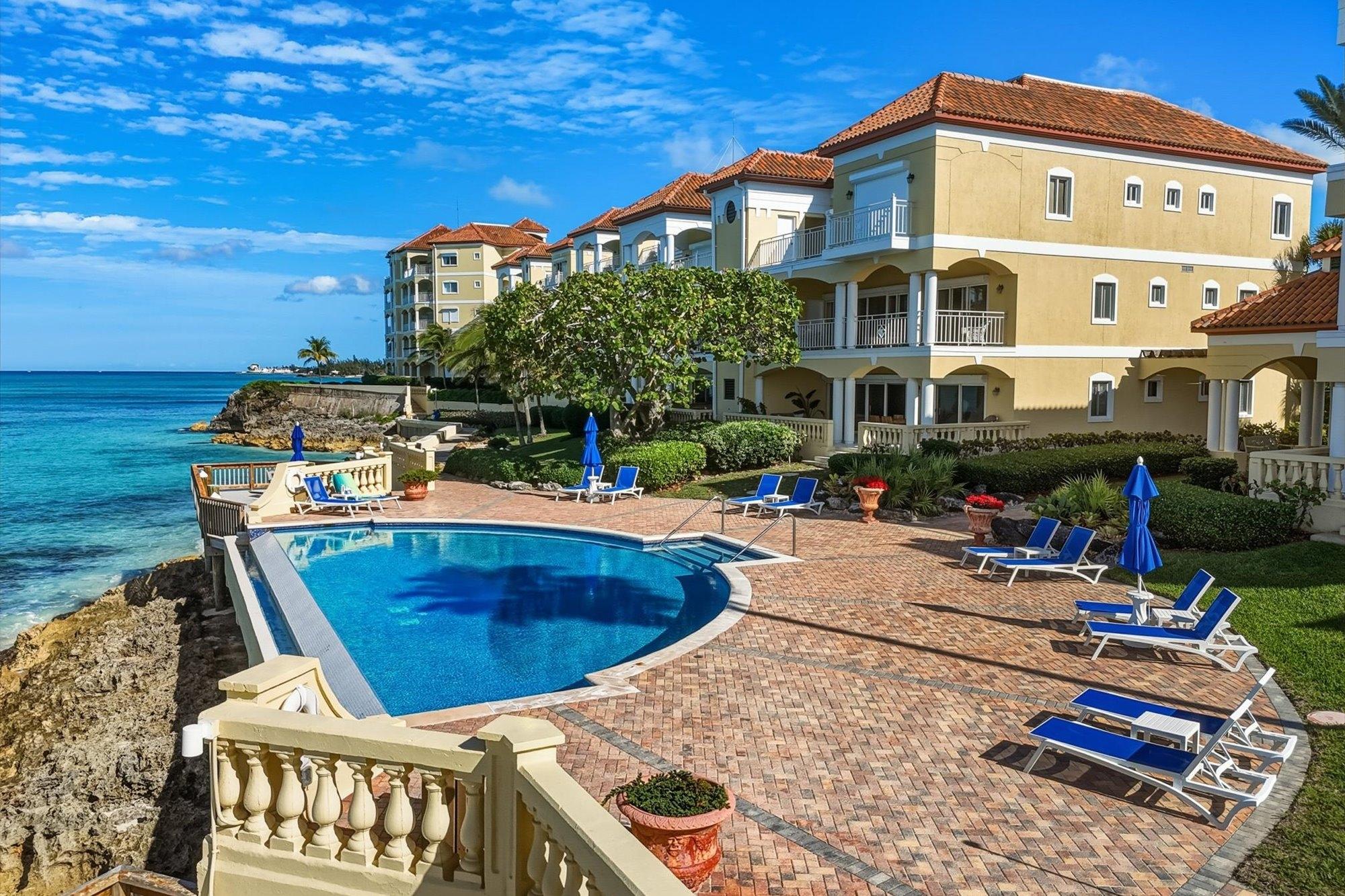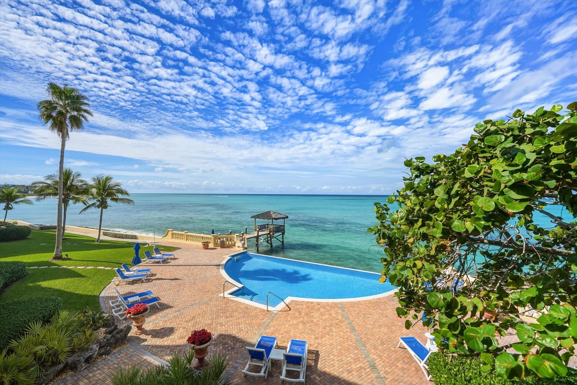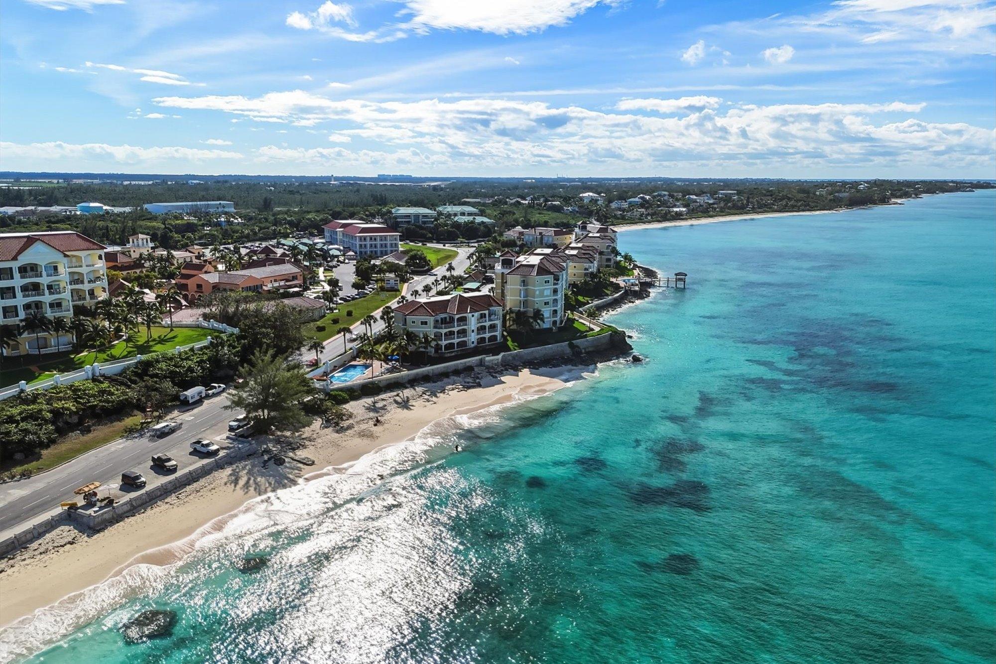 Located in the exclusive, gated oceanfront community of Caves Point, this 3-bed, 3-bath condo offers 1,800 sq. ft. of refined coastal living. Positioned on the upper floor, the unit features an expansive covered balcony with panoramic ocean views—ideal for outdoor dining and relaxation. Caves Point provides resort-style amenities including 24-hour security, 3 oceanfront swimming pools, a fitness center, a private dock with gazebo, elevator access, and a full standby generator supporting the building. Covered parking adds further convenience. Ideally situated across from Caves Village with restaurants, shops, a pharmacy, and medical offices. Just 2 miles to LPIA and 4 miles to Baha Mar.