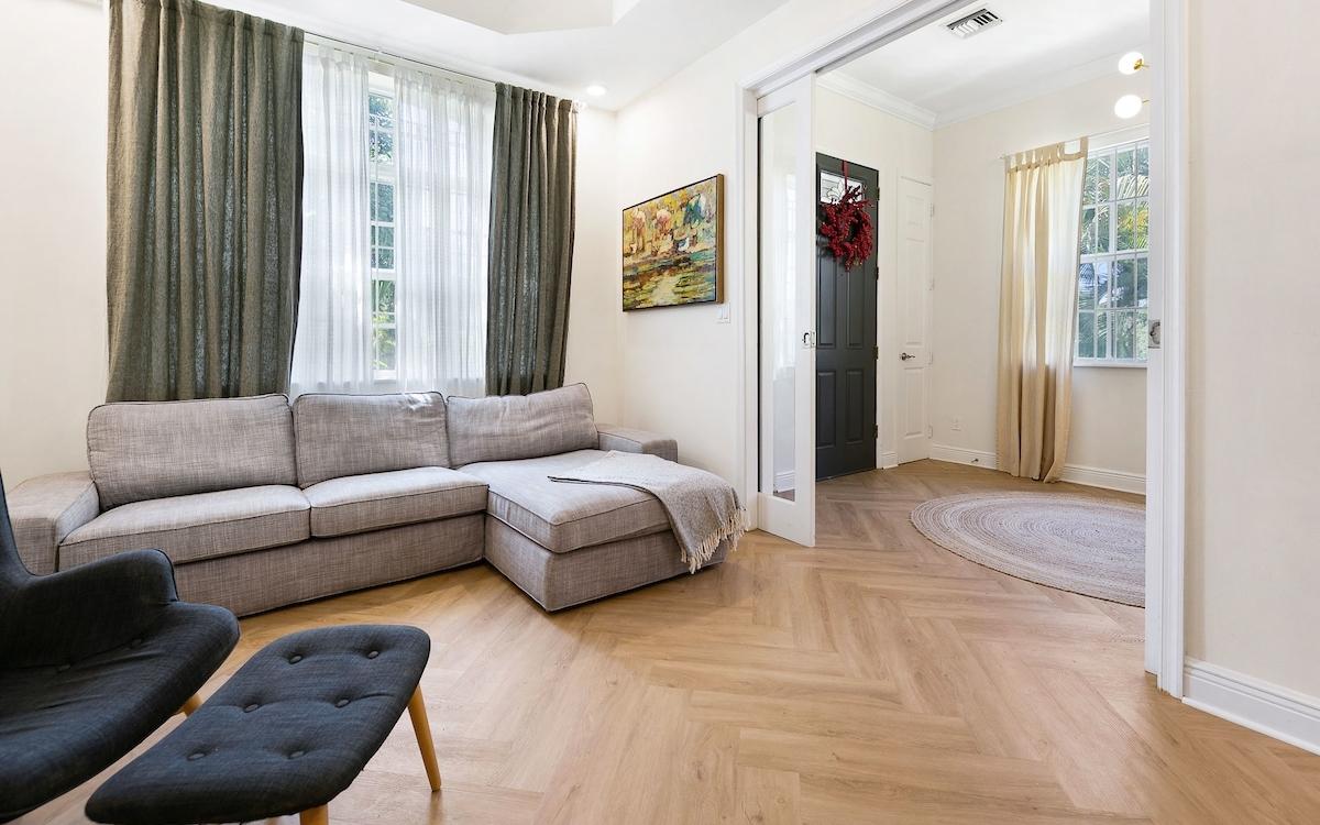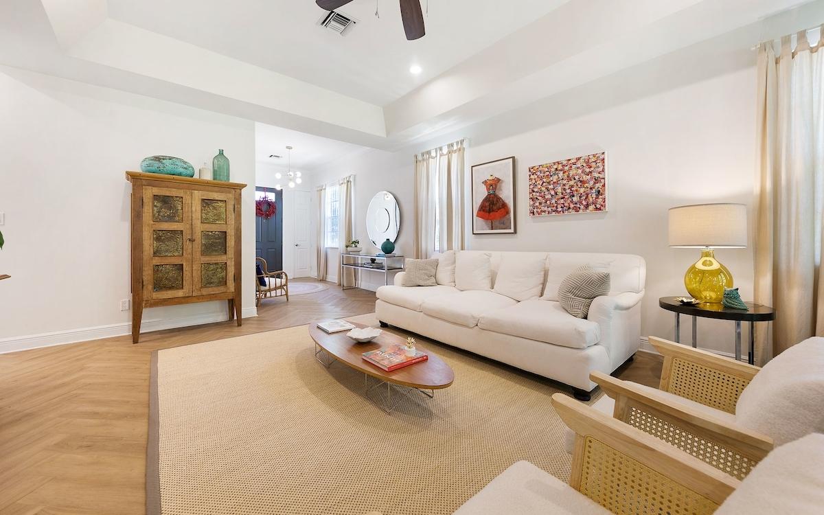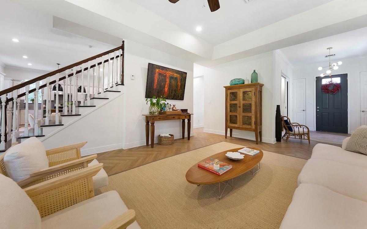 Nestled within the coveted, gated community of The Balmoral, this polished standalone residence offers the perfect blend of elegance, comfort, and modern sophistication. Boasting 4 spacious bedrooms and 4.5 tastefully designed bathrooms, this welcoming home spans 3,200 sq. ft. of refined interior living space, complemented by 450 sq. ft. of covered outdoor patios—ideal for both relaxation and entertaining. One will appreciate the contemporary inviting space with a roomy foyer, 10ft ceilings and cozy TV room. The sunny kitchen is ideal for entertaining and is outfitted with granite countertops, modern cabinetry, stainless steel appliances, an island for casual dining, and a roomy pantry. The open-plan living and dining areas flow seamlessly onto the furnished covered patio through oversized French doors and beckons to dining and entertaining al-fresco. Warm wooden stairs lead to the four well-appointed ensuite bedrooms with an inviting soaking tub in the newly renovated, primary bathroom. On the exterior, lush landscaping allow for privacy