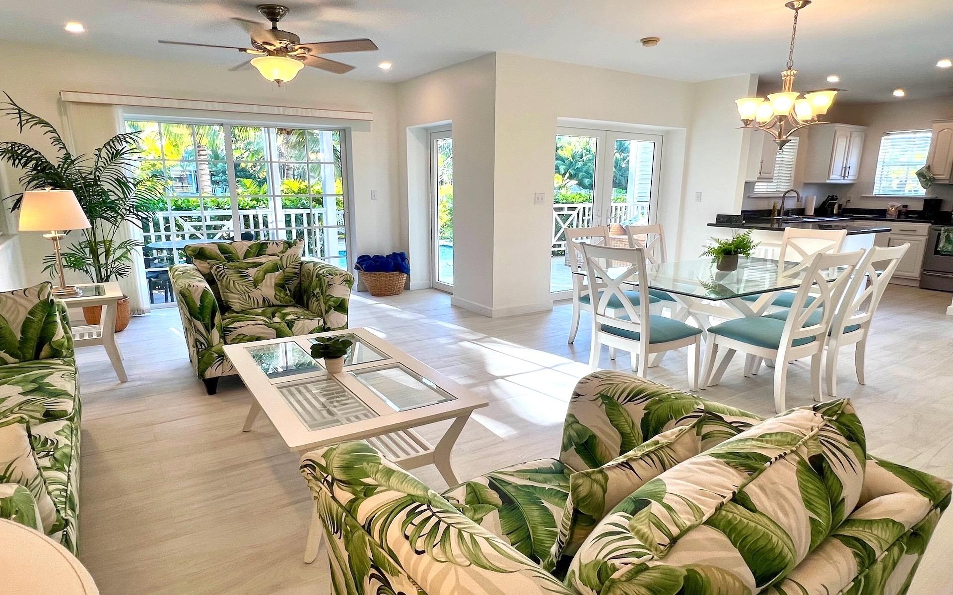 Set on one of the largest lots in Sandyport, with lush landscaping that creates a beautiful, private living experience. The home has a brand-new, large Coral stone-rimmed pool that creates a beautiful Ambiance and a view beyond King Fisher Island, with its fully built-out luxury homes. Recently renovated and upgraded, 4 Royal Palm Cay is move-in ready. The home has 3 ensuite bedrooms and a large family room. All of the cabinetry is solid wood, and the countertops are granite. Both upstairs and downstairs have large covered balconies overlooking the canal and the home's private beach and dock beyond. 4 Royal Palm Cay is ready now for you to begin your Sandyport Lifestyle