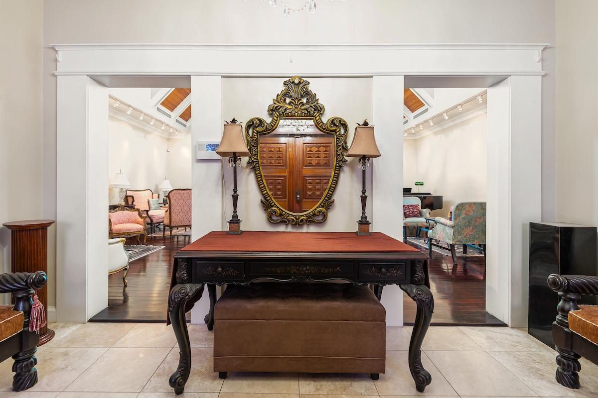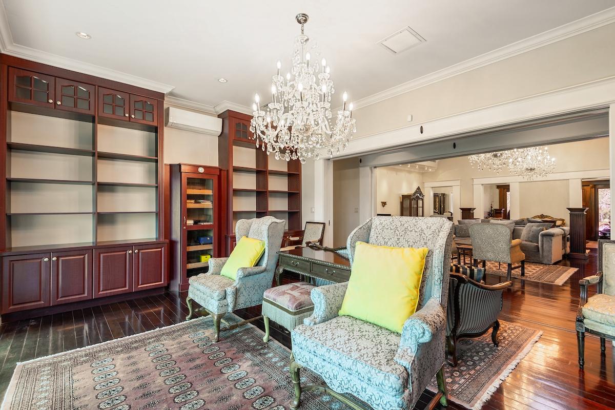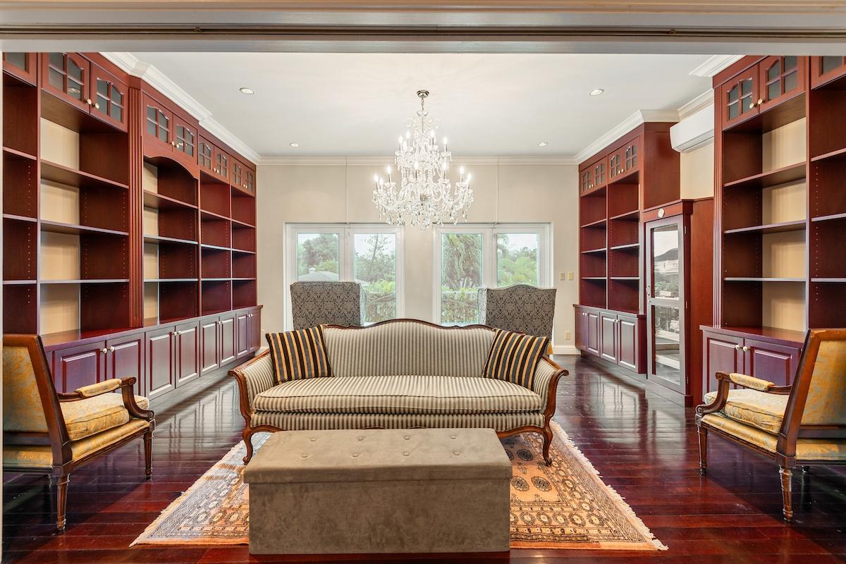 Welcome to an exceptional estate rental in the exclusive, gated community of Brigadoon Estates along Eastern Road. This elegant five bedroom, four full and two half bathroom residence is thoughtfully designed for both refined living and everyday comfort. The main level invites you in with formal living and dining rooms, a library with a charming balcony, a private office, and a chef's kitchen. The luxurious primary suite is also conveniently located on this level. Additional highlights include a home theater, a bar and entertainment room, a gym, beautiful hardwood and tile floors, and solar power for energy efficiency. Outdoors, your private oasis awaits—featuring a pool, pool house, patio, hot tub, and a spacious landscaped yard with mature trees. With dual double-car garages and advanced security, this home offers peace of mind alongside timeless elegance. Experience the perfect blend of luxury and warmth in the heart of Brigadoon.